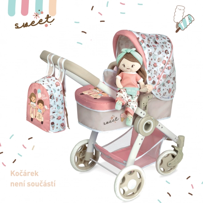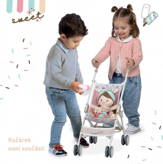 Die Plüschpuppe Sweet gehört zur beliebten Kollektion mit verspielten Motiven von Törtchen und Eis. Dank des weichen Körpers ist sie sicher und auch fürs Bettchen geeignet. Das geringe Gewicht und die kompakten Maße machen sie zum perfekten Begleiter für unterwegs und zuhause.