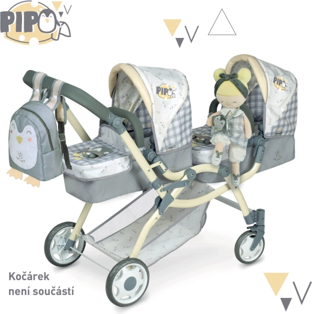 Puppe Pipo ist Teil der fantastischen Kollektion von 2022, die Sie lieben werden. Diese Kollektion umfasst Kinderwagen, Puppenmöbel und weiteres Zubehör für kleine Hausfrauen. Das charakteristische Design mit grau-weißem Karo und dezent gelben Akzenten mit Pinguinmotiv wird die Erwartungen jeder kleinen Prinzessin erfüllen.