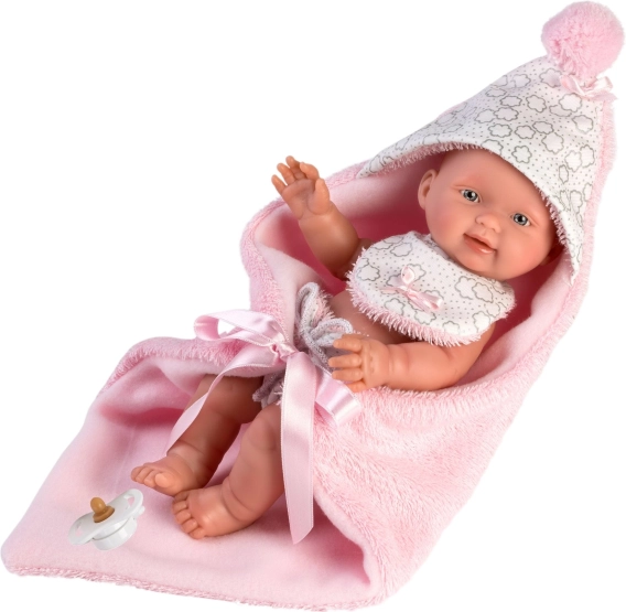 Dieses zweiteilige Set wurde speziell für die Babypuppe New Born in der Größe 26 cm entworfen. Es enthält eine wendbare Kapuzendecke, die die Puppe schützt und ihr das Aussehen eines echten Babys verleiht.