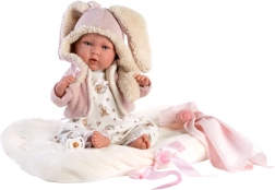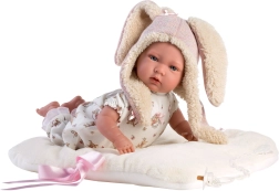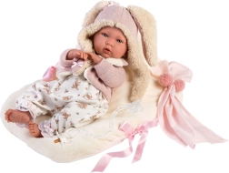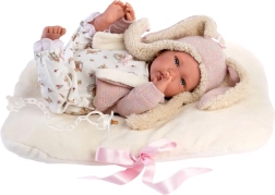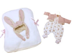 Kleiden Sie Ihre Puppenbaby in stilvolle Kleidung, die umfasst: wendbares Fleece-Kissen mit Schleifen, 3-teiliges Set und praktischen Plastikbügel. Diese handgefertigte Ware aus Spanien bietet Qualität und ist perfekt für warmes Anziehen und Spielen mit Puppen.