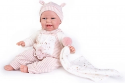 Realistische Gesichtszüge, eine niedliche Mütze und eine weiche Decke/Windel unterstreichen den authentischen Look der Puppe und machen sie zu einem schönen Geschenk.
