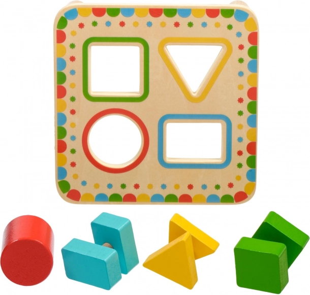 Die Platte auf stabilen Füßen verfügt über vier farbig umrahmte Öffnungen, die zu den Farben der einzelnen Teile passen. Das Set eignet sich ideal für das selbstständige Spiel ebenso wie für gemeinsames Entdecken mit Eltern und ist eine hervorragende pädagogische Holzspielzeug-Wahl für Vorschulkinder.