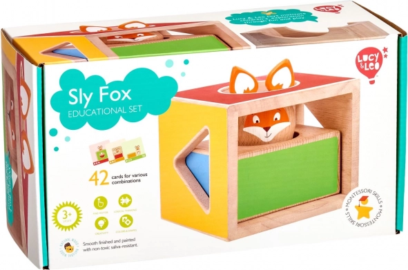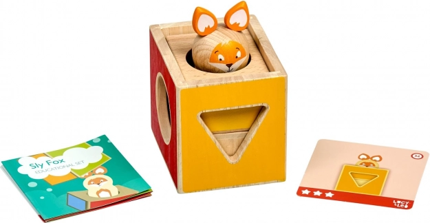 Dieses hölzerne Lernspiel enthält drei massive Blöcke mit Aussparungen in verschiedenen Formen, eine Holzfigur der Füchsin sowie einen Satz beidseitiger Aufgabenkarten in unterschiedlichen Schwierigkeitsgraden. Kinder bauen und kombinieren die Blöcke nach den Vorlagen, damit sich die Füchsin richtig „versteckt“, und trainieren so Strategie und räumliches Wahrnehmen.