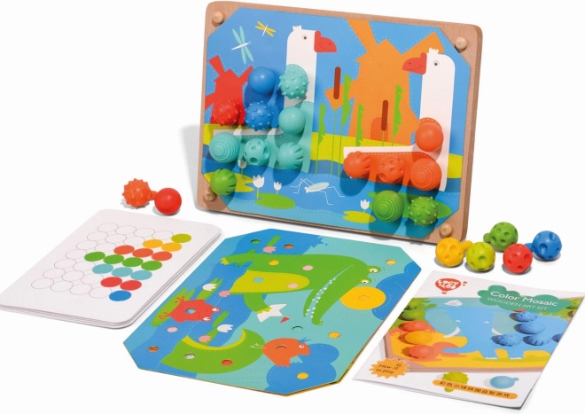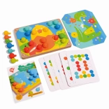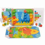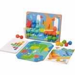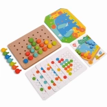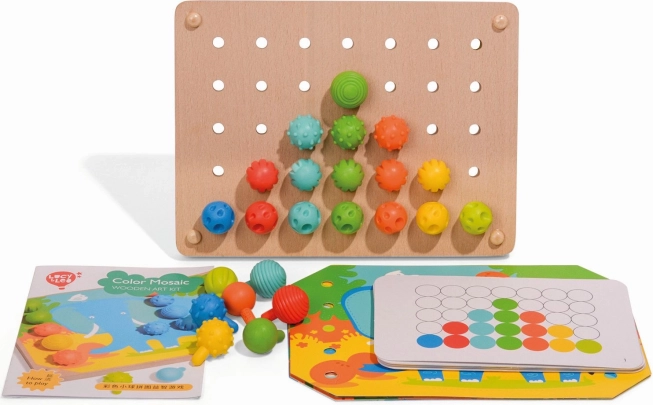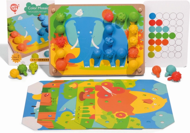 Mosaik und Fädeln ist ein hervorragendes Werkzeug für kleine Kinder zur Entwicklung feinmotorischer Fähigkeiten und der Kreativität. Es enthält 35 große Silikonstifte in sieben kräftigen Farben, mit denen Kinder farbige Vorlagen ausfüllen können. Das Set beinhaltet außerdem 12 farbige Tierbilder und 6 doppelseitige Schablonen.