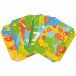 Das Set umfasst 12 farbige Tierbilder und 6 doppelseitige Schablonen, die zahlreiche kreative Möglichkeiten bieten.