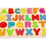 Dieses Holzpuzzle mit Großbuchstaben unterstützt Kinder dabei, das Alphabet spielerisch zu meistern, fördert die Hand-Auge-Koordination und trainiert Geduld. Die robuste Tafel mit 1,2 cm Stärke sorgt für Stabilität und Langlebigkeit, die einzelnen Teile lassen sich leicht einsetzen und herausnehmen.