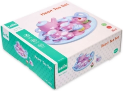Das niedliche Holz-Teeset mit Herzchen begeistert jedes Kind, das Rollenspiele rund ums Zuhause liebt. Es fördert die Fantasie, das soziale Spiel und die feinmotorische Entwicklung. Enthalten ist ein Tablett mit den Maßen 29 × 26,5 cm sowie Zubehör, darunter eine Zuckerdose (5 × 5 cm) für authentisches Servieren.