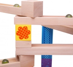 Die Bahn fördert die räumliche Orientierung, Feinmotorik und das logische Denken. Kinder werden fasziniert sein von der sanften Fahrt der Kugeln auf der von ihnen selbst gestalteten Bahn.