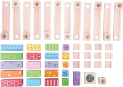 Diese Holzkugelbahn ist ideal für kreative Kinder, die gerne eigene Bahnen bauen. Enthalten sind 53 Teile, die viele Variationen und Designs ermöglichen, die von der kindlichen Fantasie abhängen.