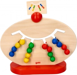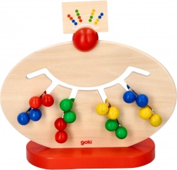 Entdecken Sie die Magie des Lernens durch Spielen mit dem ovalem Goki-Spielzeug, das Kindern eine unterhaltsame Möglichkeit bietet, ihre Fähigkeiten zu entwickeln. Dieses Holzspielzeug kombiniert farbige Kugeln und verschiedene Muster, die die Farberkennung und Sortierübungen fördern.