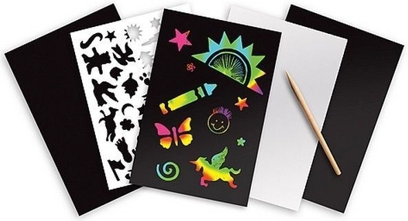 Kinder lieben diese glitzernden Kratzbilder, die eingerahmt und an die Wand gehängt werden können. Perfekt für kreative Aktivitäten in der Schule und im Kindergarten.
