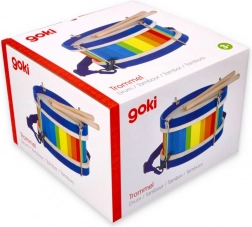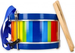 Bunte Trommel für kleine Musiker, die die Entwicklung des Rhythmusgefühls und der motorischen Fähigkeiten von Kindern fördert. Diese hochwertige Trommel ist mit zwei Holzsticks und einem verstellbaren Riemen für einfaches Tragen ausgestattet.