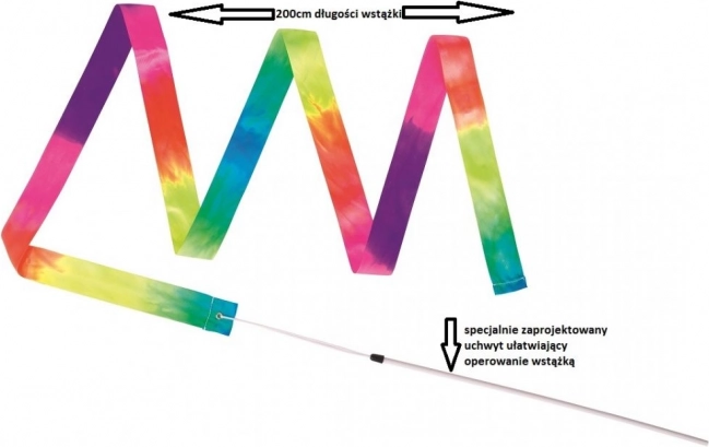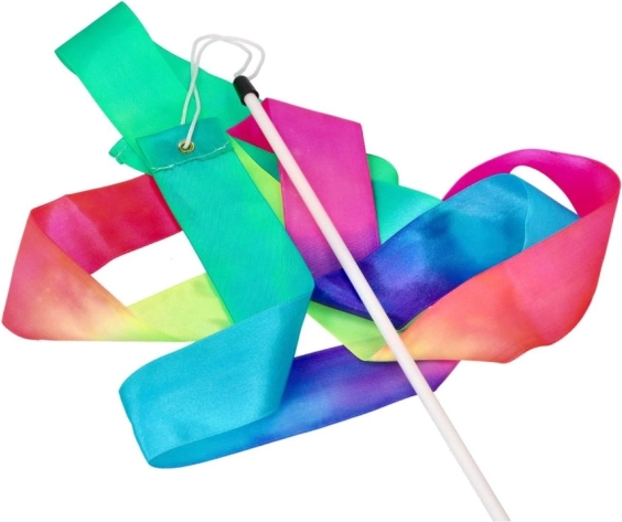 Das Gymnastikband mit Stab in Regenbogenfarben fördert kreative Bewegung, Rhythmus und Eleganz. Die leichte Konstruktion und der fließende Schwung machen es zum idealen Hilfsmittel für Kinder ab 3 Jahren, die die Welt von Tanz und Gymnastik entdecken möchten.