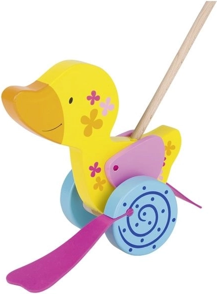 Diese Holzente Goki an einem Stock ist ideal für kleine Entdecker, die gerne ein sich bewegendes Spielzeug beobachten und ihre Route ändern. Sie hilft, die Motorik und den Gleichgewichtssinn zu entwickeln und unterstützt die ersten Schritte des Kindes.