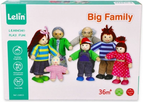 Diese detailreich gestaltete Familie ist die ideale Ergänzung für jedes Puppenhaus. Die Figuren aus Massivholz in farbigen Textilien sind angenehm anzufassen, sicher und langlebig für den täglichen Spielspaß. Dank der unterschiedlichen Größen (Eltern, Kinder, Baby) können Kinder leicht eigene Geschichten aus dem Familienalltag gestalten.