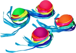 Mehrfarbige, am Ball befestigte Bänder verleihen jedem Wurf Dynamik und Vielfalt in der Bewegung.
