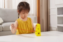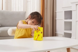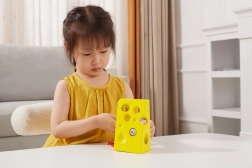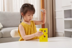 Dieser gelbe „Käse“ mit Löchern und roter Schnur samt Maus motiviert Kinder, ihre Finger spielerisch zu trainieren. Das Durchfädeln durch unterschiedlich platzierte Öffnungen unterstützt manuelle Geschicklichkeit, Bewegungssymmetrie und logisches Denken.