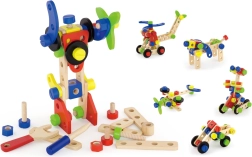 Dieser vielseitige Holz-Baukasten bietet Kindern endlose Baumöglichkeiten – von kleinen Fahrzeugen und Tieren bis hin zu einem Hubschrauber oder Roboter. Mit stabilen Holzteilen, Schrauben und Verbindern trainieren Kinder die Hand-Auge-Koordination und erlernen die Grundlagen des konstruktiven Denkens.