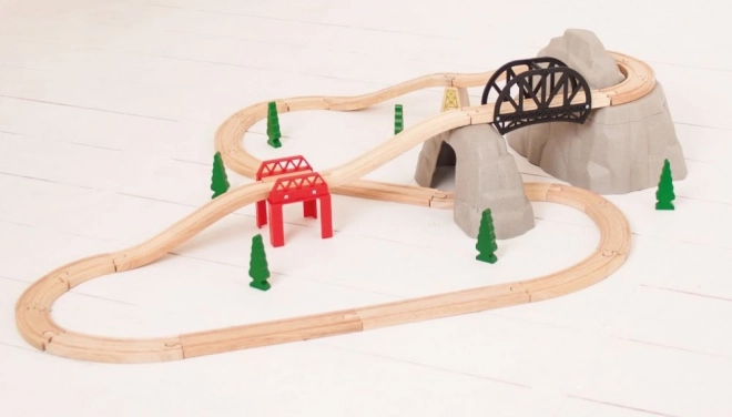 Begeben Sie sich auf ein Abenteuer mit diesem Holz-Eisenbahnset, das eine wunderschöne Gebirgsbahn bietet. Das Set enthält:
