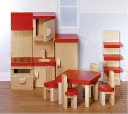 Das stilvolle Küchenset für Puppen aus der Serie Goki Basic überzeugt mit klassischem Design, massivem Holz und stabiler Ausführung. Es passt hervorragend in Puppenhäuser und eignet sich auch für das freie Spiel. Im Set enthalten sind 9 Möbelstücke, darunter eine Küchenzeile mit einer Höhe von 14,3 cm.