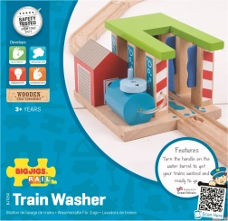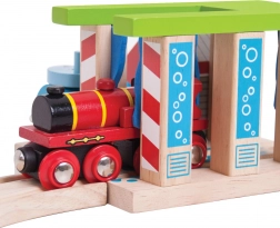Diese hölzerne Zugwaschanlage von BIGJIGS RAIL ist die ideale Ergänzung für jede Kinder-Holzeisenbahn. Dank der drehbaren Waschsäulen lässt sich die Durchfahrt leicht variieren und so kreatives Spiel sowie die Feinmotorik fördern. Die robuste Ausführung und die leuchtenden Farben überzeugen auf den ersten Blick und laden zu weiteren Spielszenarien ein.
