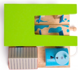 Stellen Sie die Säulen so ein, dass der Zug entweder nur durchfährt oder von den Bürsten „gewaschen“ wird. Kinder lieben es, Szenarien zu wechseln und trainieren dabei ihre Feinmotorik.