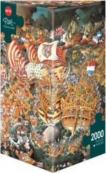 Puzzle Schlacht von Trafalgar von dem bekannten Karikaturisten Michael Ryba versetzt Sie in historische Momente mit wunderschöner Grafik. Die Verpackung enthält 2000 Teile und eine unkonventionelle dreieckige Schachtel mit einem Poster als Vorlage zum Puzzeln.