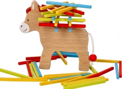 Das Spiel hilft, feinmotorische Fähigkeiten zu entwickeln, indem man die Stäbchen sorgfältig auf den Esel legt.