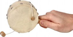 Die Trommel ist leicht zu transportieren und kann bequem mit einer Hand gehalten werden. Durch ihre Form und kompakten Abmessungen ist sie ideal für kleine Hände.