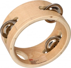 Das Tamburin besteht aus Naturholz, das Robustheit und eine ansprechende Optik gewährleistet.