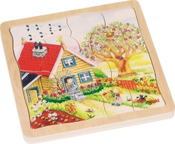 Jedes Bild auf dem Puzzle repräsentiert eine Jahreszeit, was den Kindern hilft, die Veränderungen in der Natur während des Jahres zu verstehen.