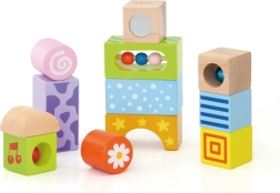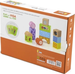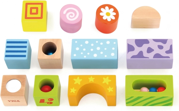 Dieses Set aus hölzernen Soundbausteinen bringt Kindern erste Freude am Bauen und am Entdecken von Klängen. Jeder Stein ist so gestaltet, dass er mit Farben, Mustern und verschiedenen Klangelementen (Glöckchen, Rasseln) fasziniert und Gehör sowie Hand-Auge-Koordination fördert.