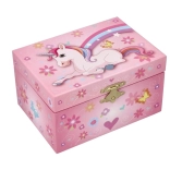 Dieses Spieluhr-Schmuckkästchen erfreut jede kleine Dame. Innen befinden sich ein Spiegelchen und eine niedliche Einhornfigur, die sich beim Öffnen des Deckels zur Melodie von Schwanensee zu drehen beginnt. Das Innere ist mit weichem Stoff ausgekleidet, damit Ketten, Armbänder oder Ringe sicher aufbewahrt sind.