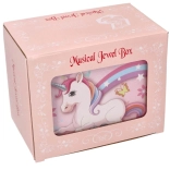 Das Schmuckkästchen kommt in einer hübschen Schachtel mit Einhorn und Regenbogen – ideal als fertiges Geschenk ohne zusätzliches Verpacken.