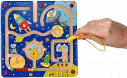 Fördern Sie die Fähigkeiten Ihrer Kinder mit diesem bunten Magnetspiel Weltall. Das Spiel enthält einen magnetischen Stab an einer Schnur, der Ihren Kindern hilft, die Kugeln durch das Labyrinth zu bewegen.