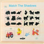 Spielerisches Lernspiel für die Kleinsten: ein Holzpuzzle, bei dem Kinder den passenden Schatten zu den Bildern finden. Hochwertiges lackiertes Holz, Förderung der Feinmotorik sowie Erkennen von Formen, Tieren und Fahrzeugen. Geeignet ab 2 Jahren.
