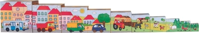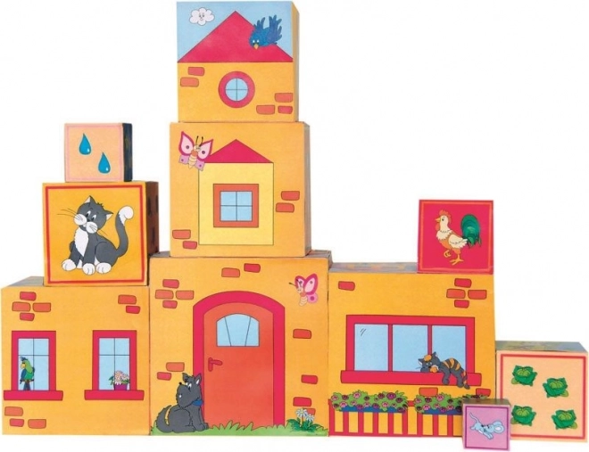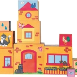Diese hölzernen Becher in Hausform unterstützen spielerisches Lernen. Kinder können die Becher stapeln, ineinander stecken und sortieren und verbessern so die Hand-Auge-Koordination, das räumliche Vorstellungsvermögen und die Geduld. Die lackierte Oberfläche ist glatt und angenehm anzufassen.