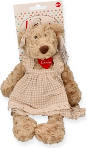 Lernen Sie den Bären Lumpinka kennen – sanft, anschmiegsam und bereit, vom ersten Tag an Freude zu bereiten. Sie trägt ein charmantes kariertes Kleidchen mit Spitze und Schleife, das sie zu einer stylischen Begleitung im Bettchen und auf dem Regal macht.