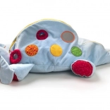 Dank der Vielzahl von Texturen und Farben hilft der Plüschhund, die sensorischen Fähigkeiten und die Kreativität des Kindes zu entwickeln.