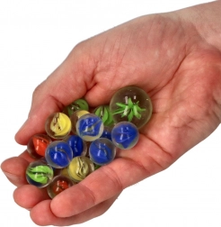 Entdecken Sie die Welt des Spielspaßes mit einem Set von 21 Glasmurmeln, die ideal für Kinderspiele und die Entwicklung der Feinmotorik sind.