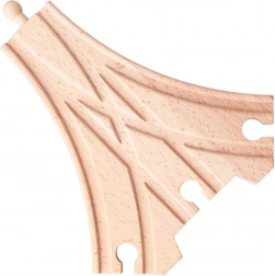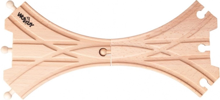 Die Eisenbahn-Kreuzweiche X ist das ideale Teil für kleine Streckenbauer. Sie ermöglicht das Kreuzen der Gleise und erweitert das Spiel um vielfältige Möglichkeiten, Züge zu führen und Fahrten zu planen. Dank des einfachen Stecksystems lässt sie sich mühelos mit anderen Holzgleis-Elementen verbinden.