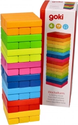 Der Balancier-Turm von GOKI bringt den klassischen Nervenkitzel in modernem Regenbogen-Design. Jede Etage besteht aus drei farbigen Holzplättchen, die zu einem stabilen Turm gestapelt und anschließend nacheinander vorsichtig an die Spitze versetzt werden. Ziel ist es, die Balance so lange wie möglich zu halten.