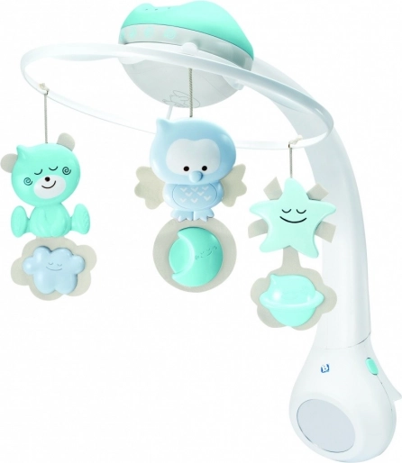 Dieses vielseitige Mobile wächst mit Ihrem Kind: vom Neugeborenenalter als Mobile mit sanftem Licht und Musik (0–5 Monate), über ein Nachtlicht mit Musik am Bettchen (6–18 Monate), bis hin zum eigenständigen Nachtlicht mit Musik für den Nachttisch (18+ Monate). Der Projektor projiziert Sterne und schafft eine ruhige Atmosphäre für ein leichtes Einschlafen.