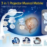 Universelles Baby-Mobile mit Projektor und Nachtlicht 3-in-1 von INFANTINO beruhigt Ihr Baby mit sanftem Licht, entspannenden Melodien und langsamer Drehung der Spielzeuge. Bietet Tages- und Nachtmodus, 6 Melodien und 4 Naturgeräusche, einfache Befestigung am Bettchen und die Möglichkeit der Nutzung als Nachtlicht auf dem Nachttisch.