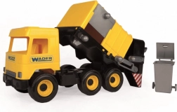 Der Wagen verfügt über einen funktionierenden Hecklader, der das Aufladen und Auskippen von „Abfall“ aus der beiliegenden Mülltonne erleichtert. Das frische gelbe Design mit schwarzen Details und sechs Rädern sorgt für Stabilität und eine sanfte Bewegung auf unterschiedlichen Untergründen.