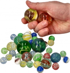 Glasmurmeln Goki sind ideal für die Unterhaltung von Kindern und als Dekoration. Dieses Set enthält 50 unterschiedlich große Murmeln, die endlose Spielmöglichkeiten bieten.