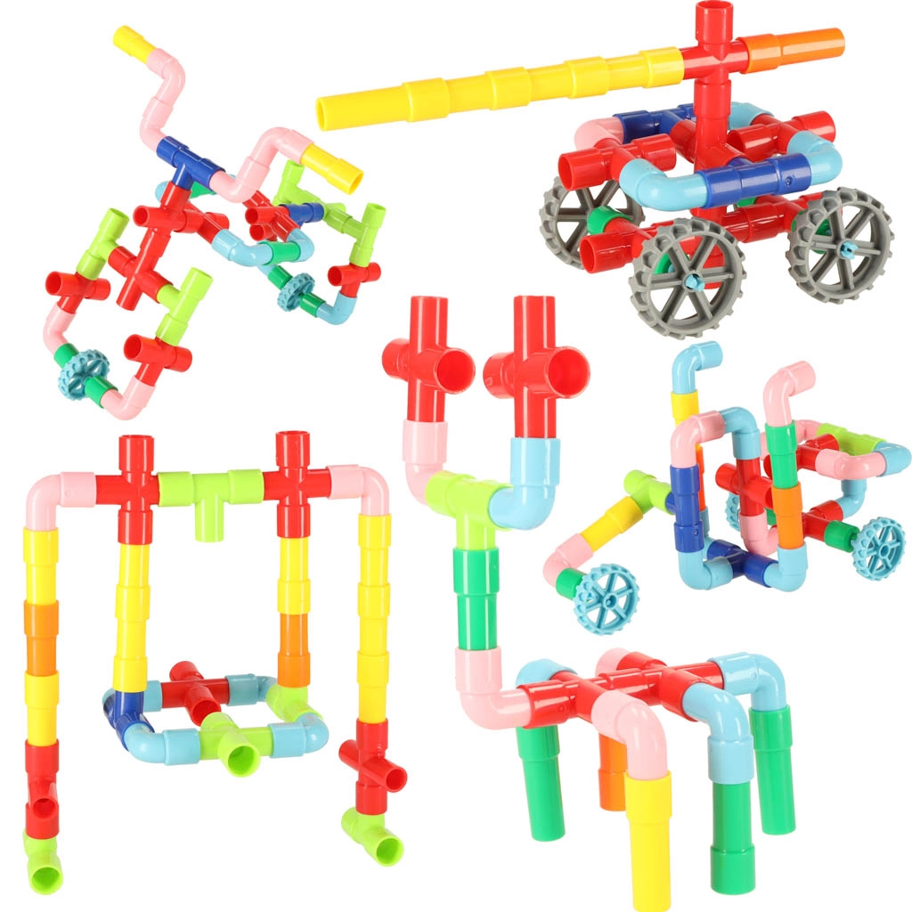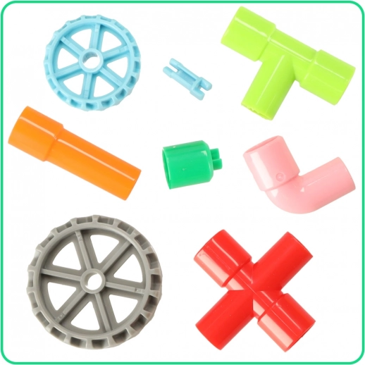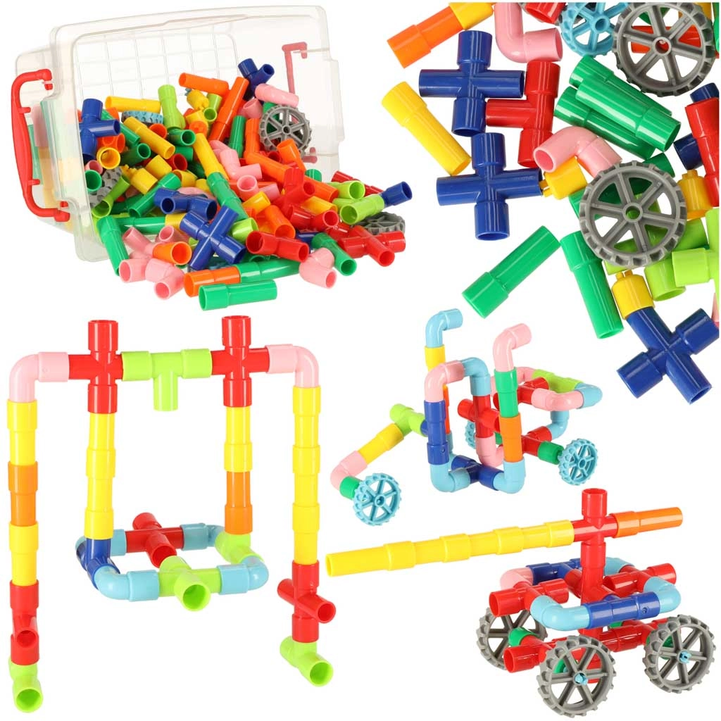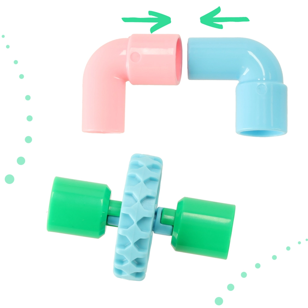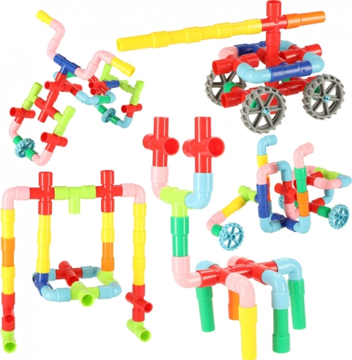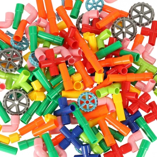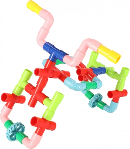 Dieses bunte Konstruktionsspielzeug-Set erinnert an Wasserrohre und ist ideal, um die Kreativität Ihres Kindes zu fördern.