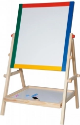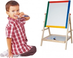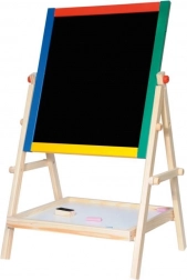 Die doppelseitige Kinder-Tafel mit Kreide- und Magnetfläche bietet endlose Möglichkeiten für kreative und lehrreiche Aktivitäten. Dank ihres bunten Designs wird sie ein attraktives Accessoire für das Kinderzimmer.