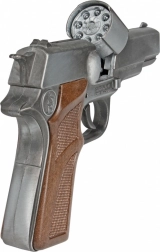 Metallische Polizeipistole für 8 Schuss mit Magazin aus der Gold-Kollektion.