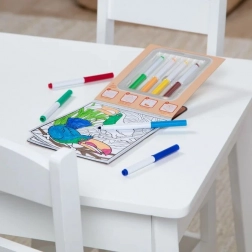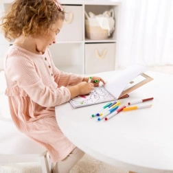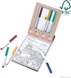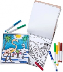 Dank der im Set enthaltenen mehrfarbigen Stifte ist das Gestalten schnell, sauber und ohne unnötige Unordnung. Zeichnungen mit Wildtiermotiven (z. B. Zebra, Flamingo oder Koala) inspirieren Kinder, die Natur zu entdecken und eigene Geschichten zu erzählen.